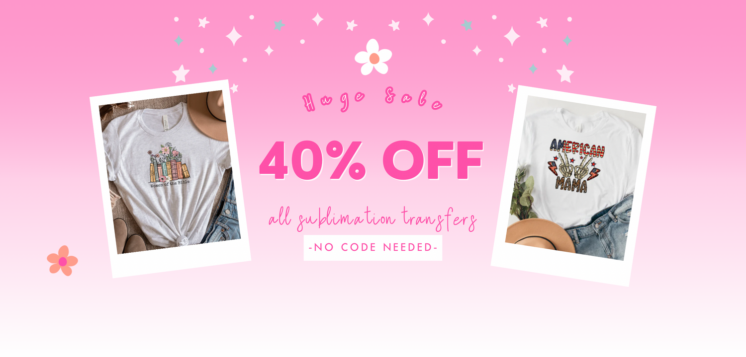 Turnaround time for sublimation transfers is 7-14 business days. Screen print transfers and DTF transfers ship within 2 business days. Other products have a 7-14 business day turnaround time during the holiday season. If you order multiple types of transfers or items, the longer of the turnaround times apply so everything ships together.