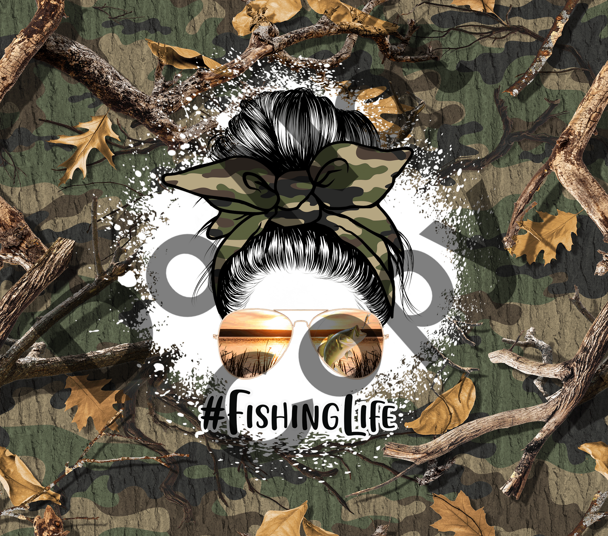 #FishingLife camo messy bun tumbler transfer