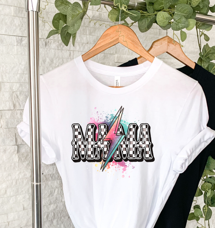 Mama colorful bolt checkers sublimation shirt transfer